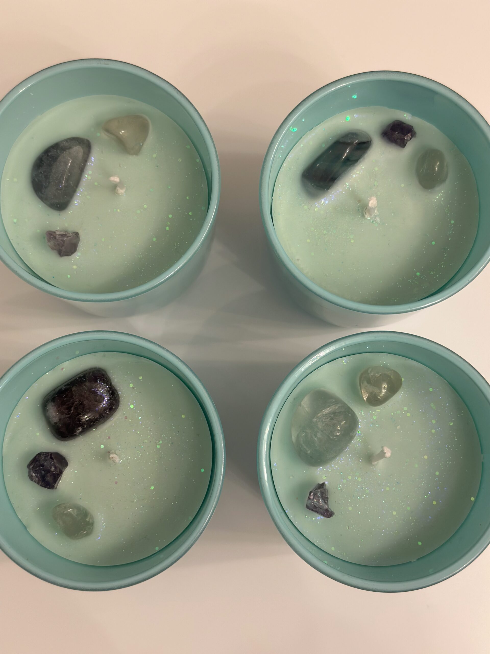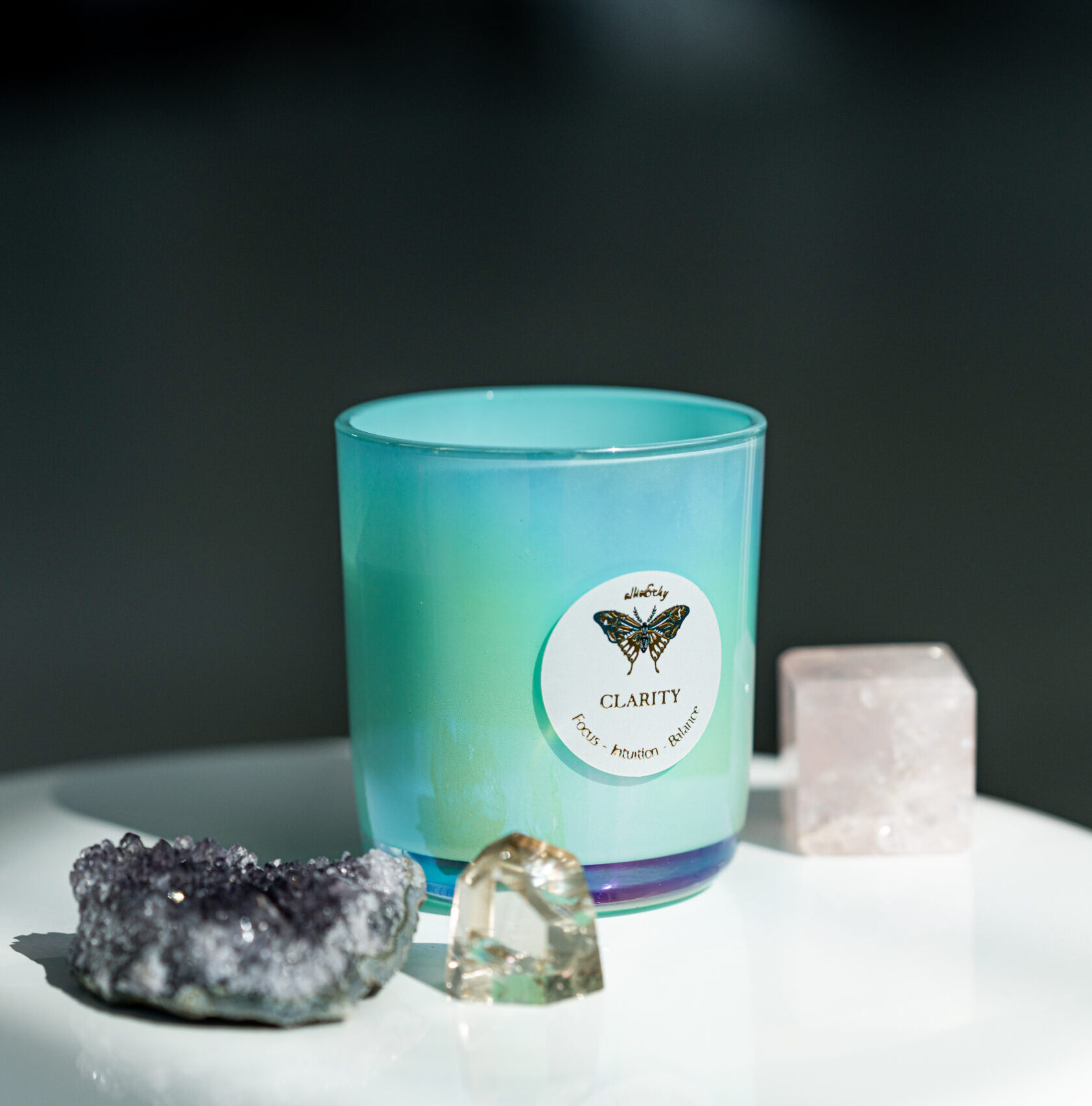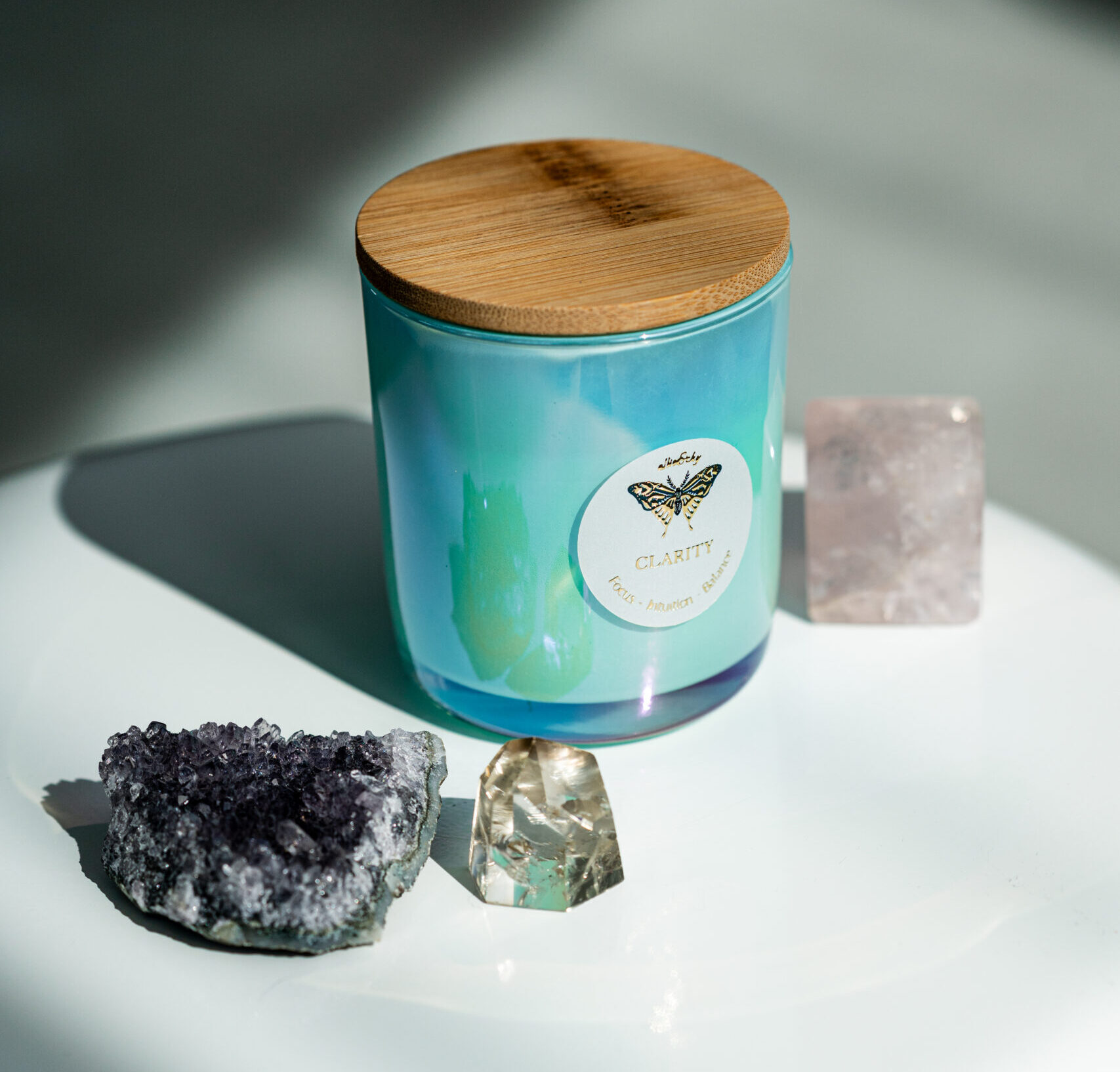 Edelsteinkerze CLARITY– Handgemachte Sojawachskerze für Fokus und Klarheit